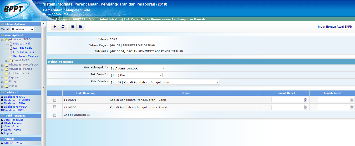 1Admin Akuntansi SKPDmelakukan input jumlah debet dan kredit neraca awal SKPD