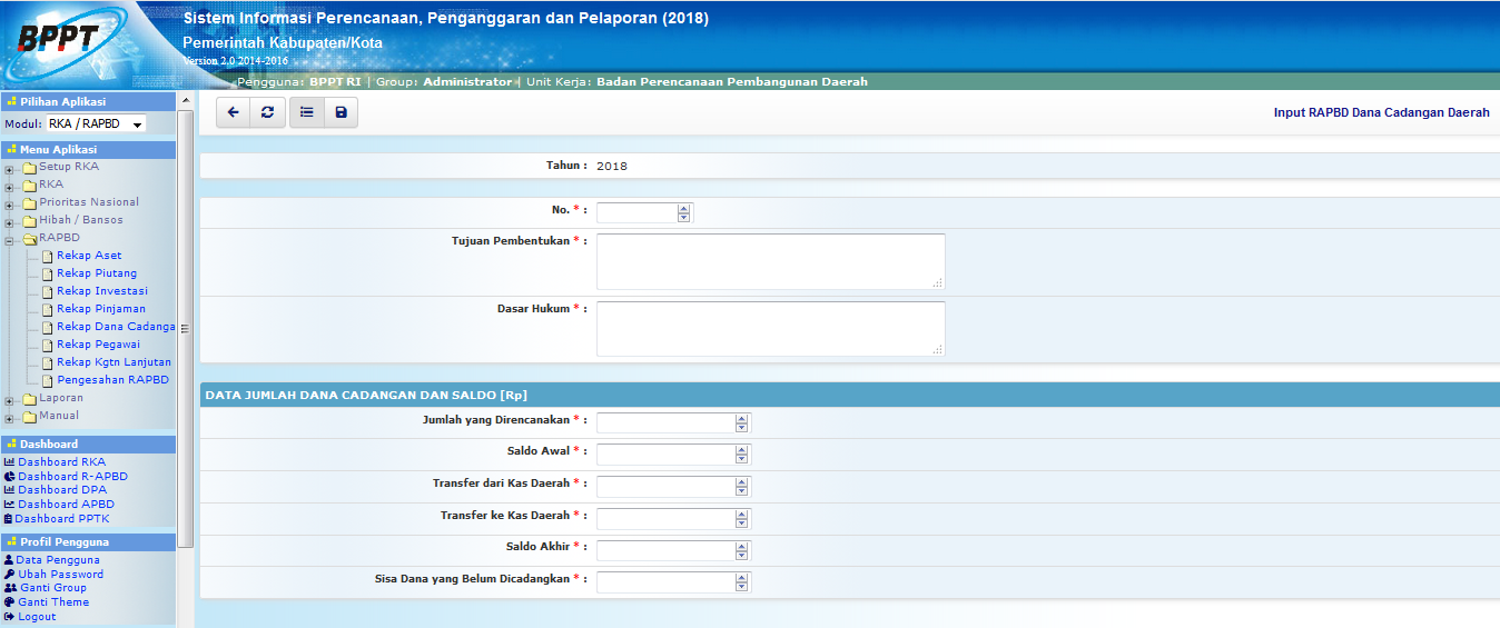 Berikut adalah prosedur operasional penggunaan aplikasi dalam proses pengisian formulir RAPBD Dana Cadangan Daerah :