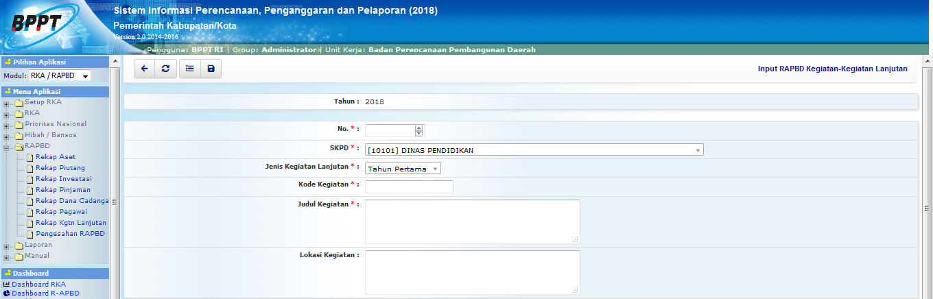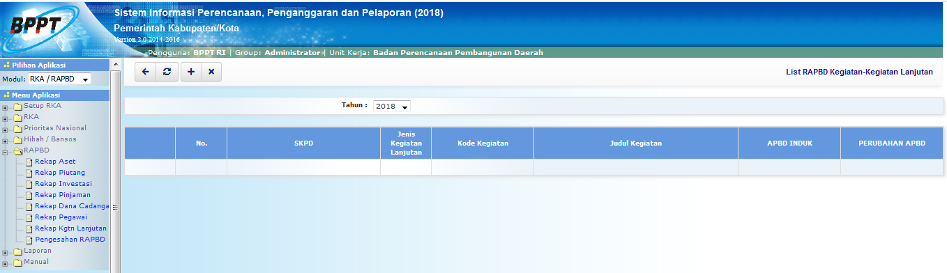 RAPBD Kegiatan Lanjutan adalah proses input anggaran untuk kegiatan yang tidak selesai pada tahun sebelumnya