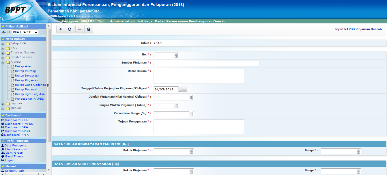 untuk melakukan proses input pinjaman yang dilakukan oleh daerah