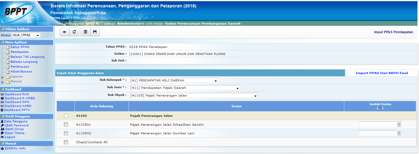 • Import PPAS dari RKPD Final apabila anggaran pendapatan sama dengan RKPD Final.