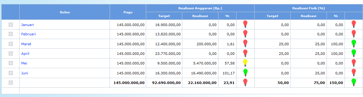 Pilih Bulan untuk menampilkan detail capaian realisasi kegiatan pada bulan yang bersangkutan