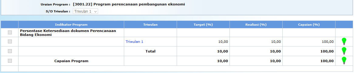 • Pilih Triwulan untuk menampilkan detail capaian realisasi program pada triwulan yang bersangkutan