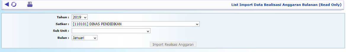 • Tekan tombol Import Realisasi Anggaran untuk mengimport data realiasi anggaran kegiatan OPD pada bulan yang bersangkutan.