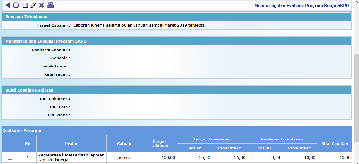 Prosedur ini berfungsi untuk penyediaan data capaian triwulanan realisasi program tahunan OPD yang telah ditetapkan di Renja masing-masing OPD.