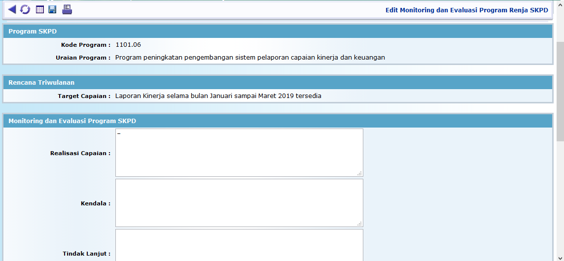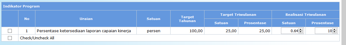 • Isikan nilai realisasi capaian per triwulan, baik nilai target persatuan dan target secara prosentase. Nilai yang diisikan per triwulan tidak kumulatif