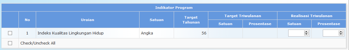 • Isikan nilai capaian realisasi indikator sasaran per triwulan, baik nilai realisasi persatuan dan realisasi secara prosentase. Nilai yang diisikan per triwulan tidak kumulatif