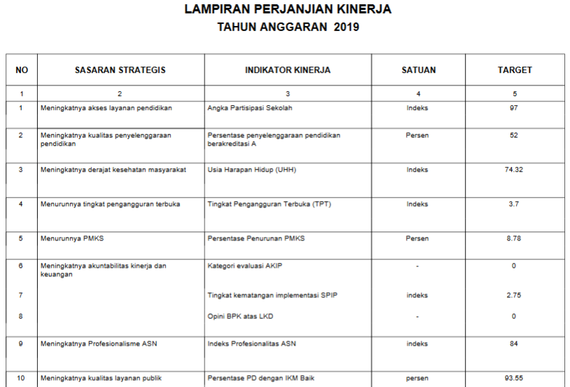 • Berikut contoh perjanjian kinerja kepala daerah