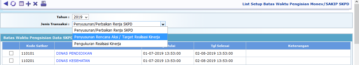 • Pilih Jenis Transaksi untuk menentukan batas waktu terhadap salah satu tahapan proses penyusunan SAKIP